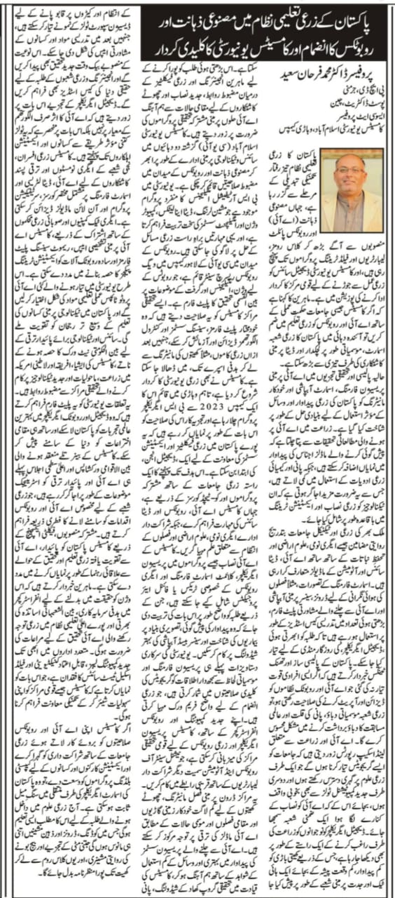 Integration of Artificial Intelligence and Robotics in Pakistan’s Agricultural Education System and the Key Role of COMSATS University.